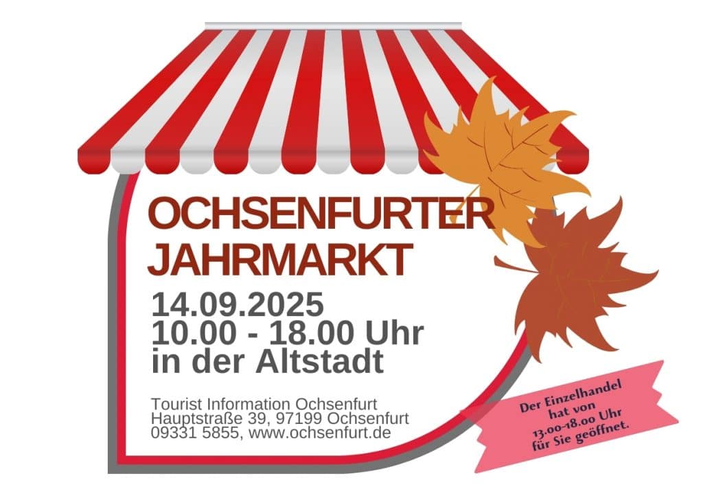 Wenn sich die historische Altstadt von Ochsenfurt in eine lebendige Marktkulisse verwandelt, dann ist wieder Jahrmarktszeit! Am Sonntag, den 14.09.2025 findet der Herbstmarkt in der Ochsenfurter Altstadt entlang der Fachwerkhäuser statt.