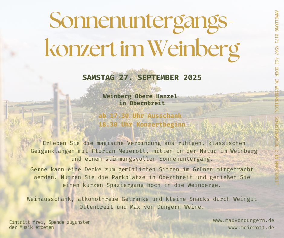 Klassische Violine mit Florian Meierott und Wein vom Weingut Max von Dungern mit Blick über den Weinbergen…